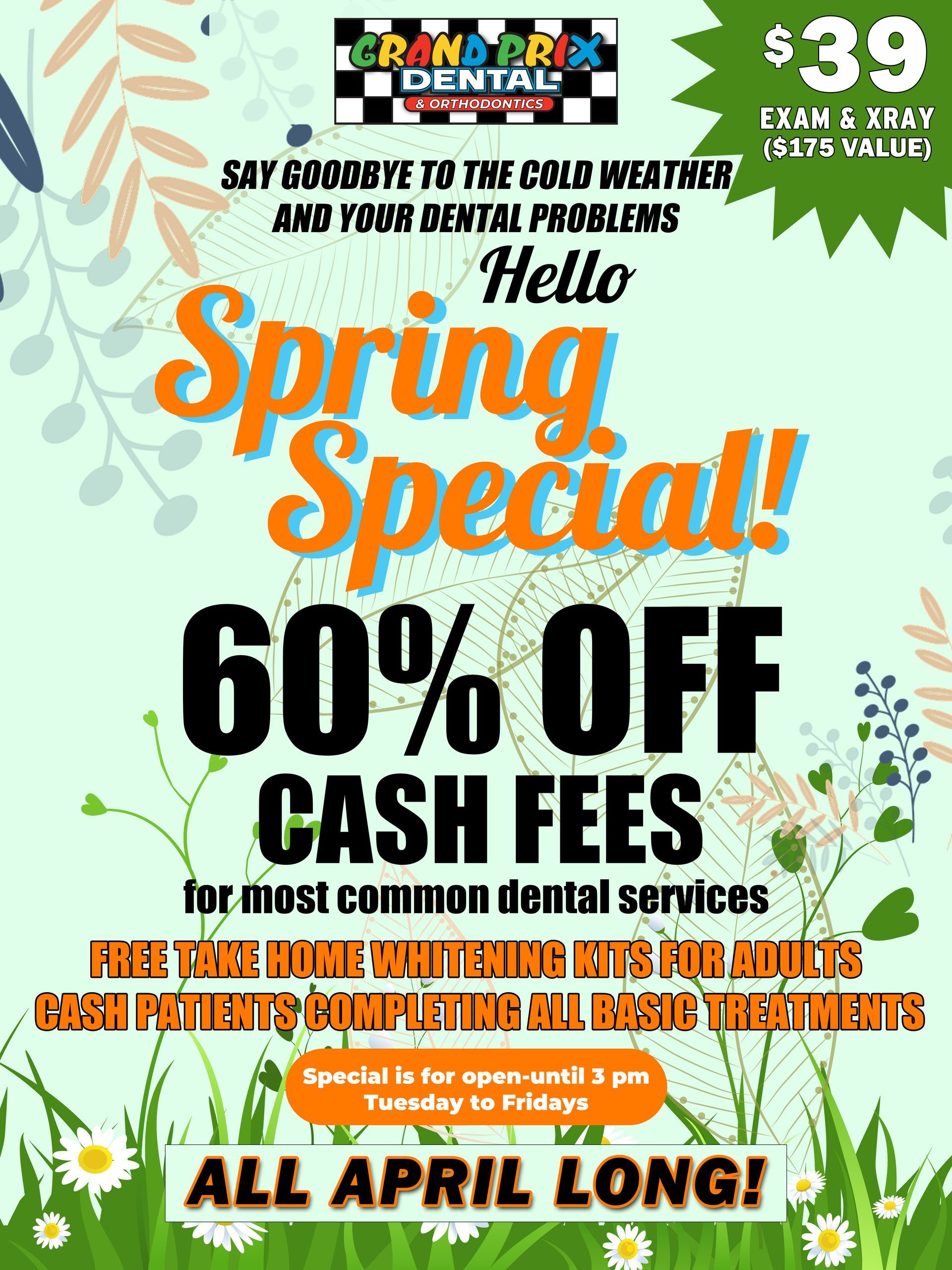 Dental care is crucial all year round, but spring provides the motivation many need to renew their commitment to oral health. Regular dental check-ups play a significant role in preventing tooth decay, gum disease, and maintaining overall oral hygiene. It is during these appointments that your dentist can catch potential issues early on and give your smile the attention it deserves. With the April dental special at Grand Prix Dental, individuals and families can enjoy a comprehensive dental exam and X-rays for just $39 (valued at $175). This incredible offer ensures you can prioritize your dental health without breaking the bank.